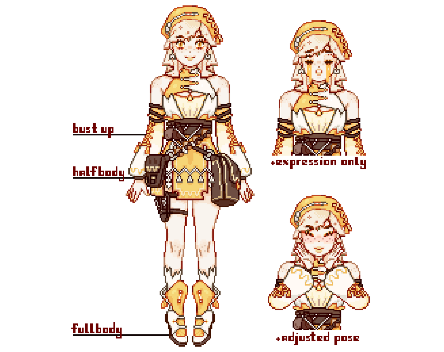 +$25 adjusted pose: poses that would adjust the character's arms. if an expression is included in the pose change, expression is free of charge.
